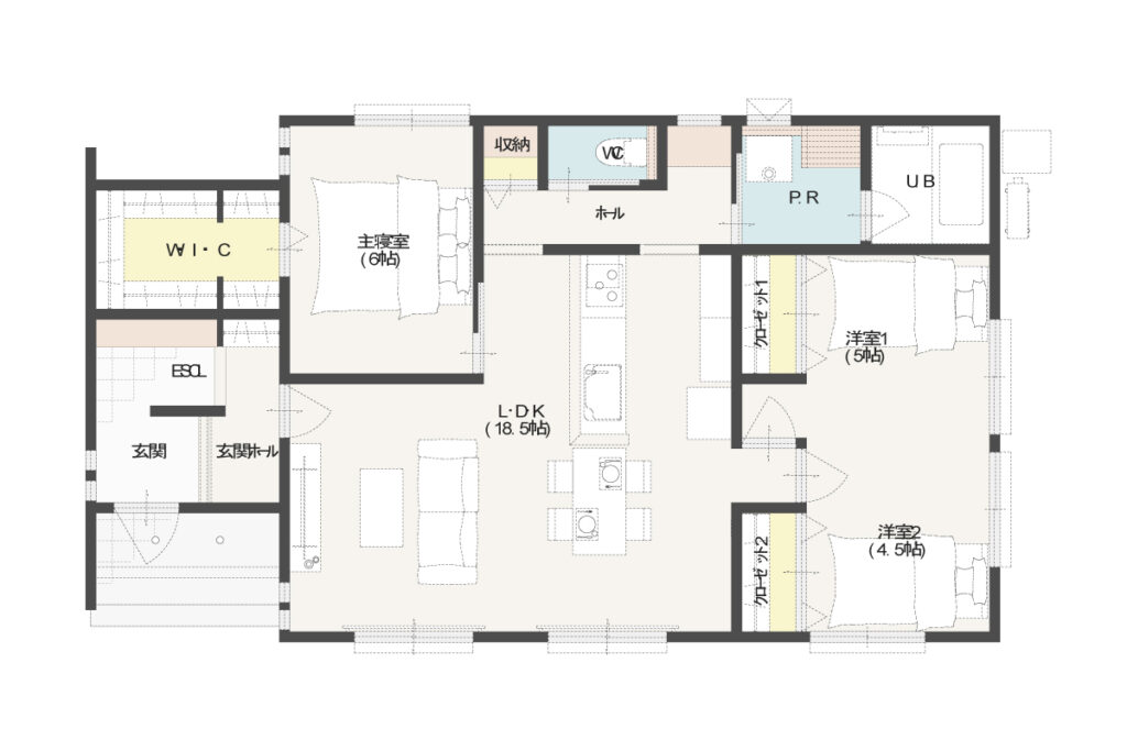 “ちょうどいい!駅から徒歩5分で心地よく暮らせる約26坪”の平屋、3LDK。