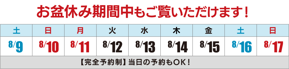 尚、休暇期間中も、お客様の家づくりや不動産に関するご相談、モデルハウスや分譲住宅の見学は、事前予約にて対応させていただきます。