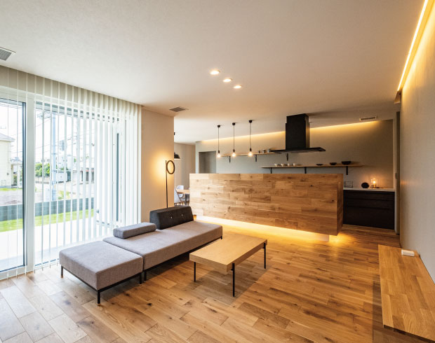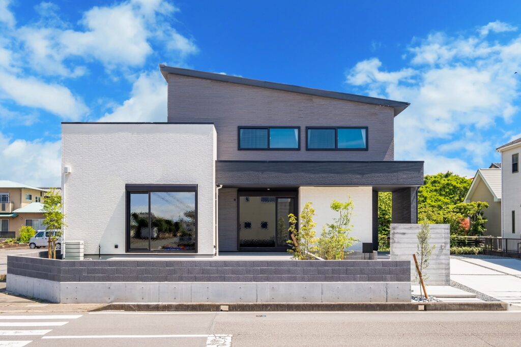 水平ラインを強調した伸びやかなデザインで、人生のうち最も長い時間を過ごすであろう自邸で長期間安全に且つ快適に暮らすための工夫を凝らした美しい邸宅です。