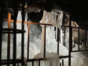 夏でも溶けずに残る天然の氷柱は神秘的です。