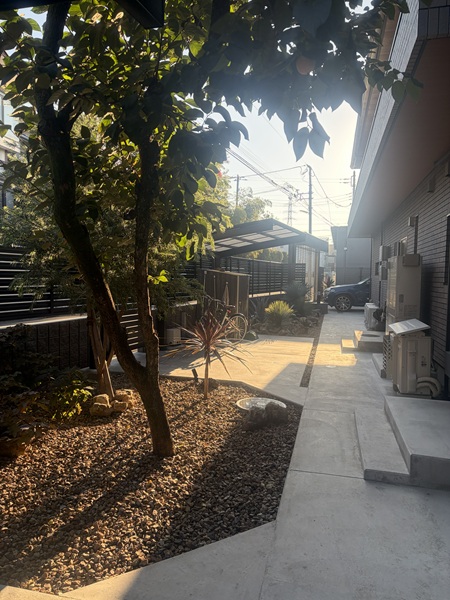 都会の家ならではの駐輪場とごみ置き場にも屋根がある所・・・