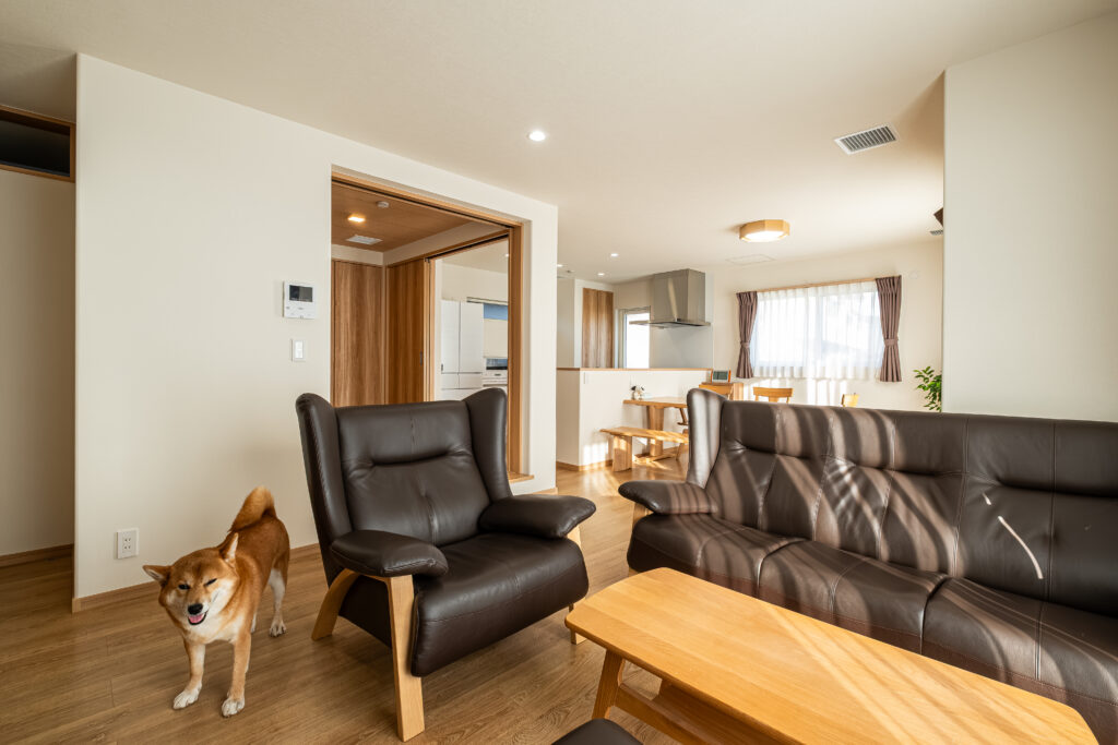 先祖代々のお仏壇を祀る小上がり和室、広い庭、家族が集まる大きなリビング、そして一年中快適な全館空調など、I様の暮らしに必要な要素がしっかり形になり、「本家としての住まい」をつくるお手伝いができたことを嬉しく思っています。