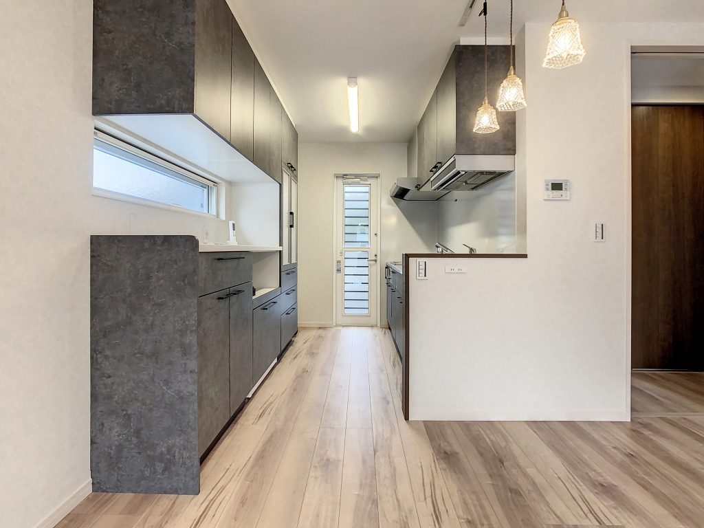 1階親世帯のおしゃれで使いやすいキッチン収納!引き出しや開き戸の組み合わせでキッチンの利便性がアップ!