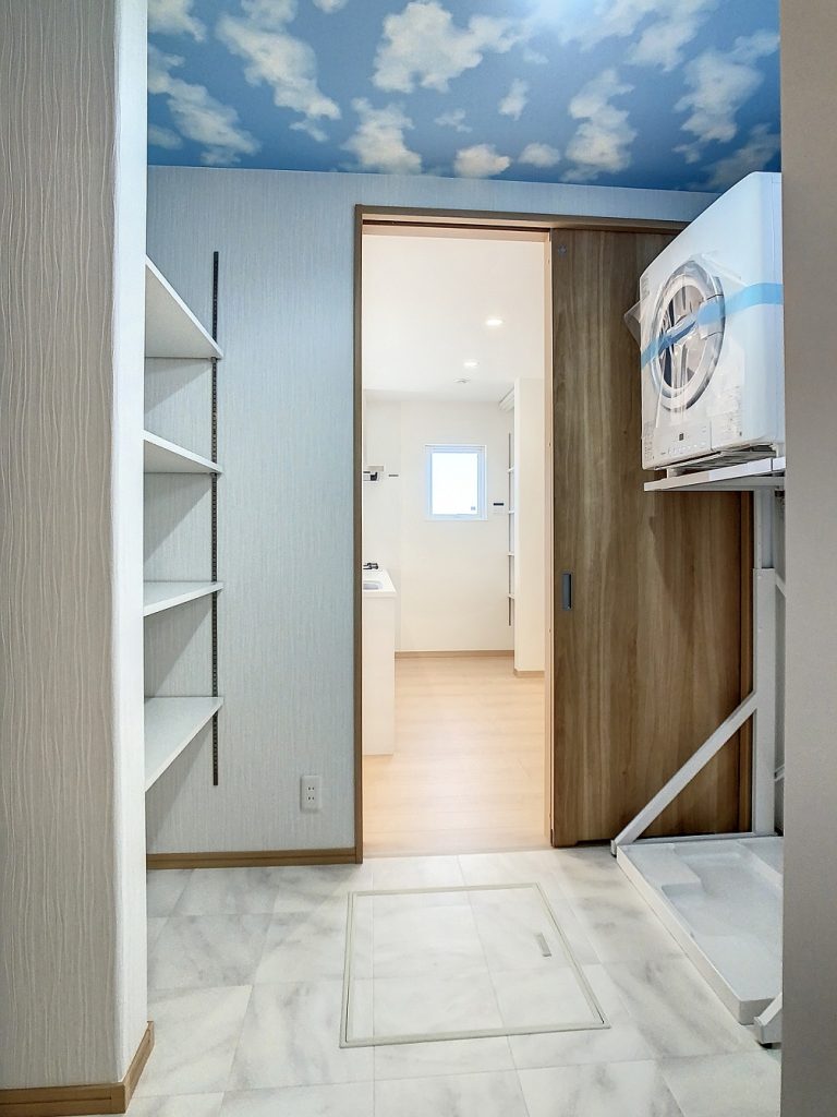 広めの洗面脱衣室は、タオル、下着等の収納もバッチリ!