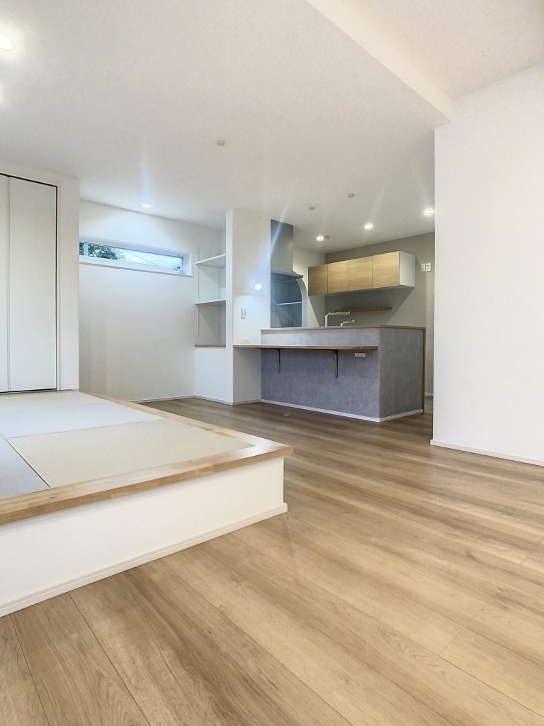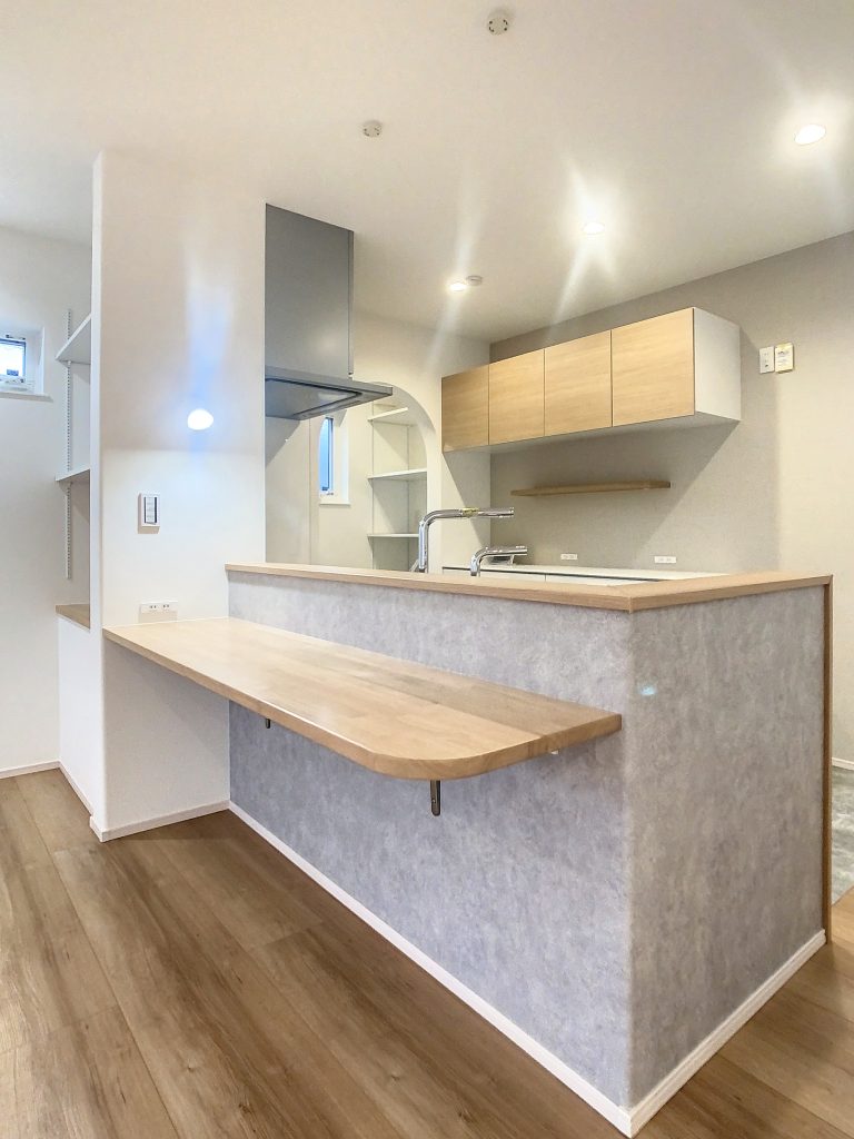 状況に応じて家族が自由に使えるマルチなキッチンカウンター。料理をしながらカウンター越しにお子様の勉強を見守ることができたり、家事の合間のちょっと休憩したい時にも使用できます。