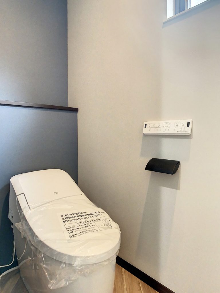 ネイビーのアクセントクロスとホワイトの組合せにより、清潔感あふれる爽やかでクールな空間が生まれました。