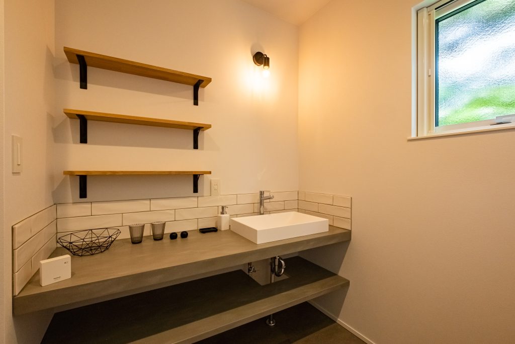 洗面室と脱衣室を別々にしたことで、家族の誰かが入浴中でも気兼ねなく手洗いや歯磨きができます!