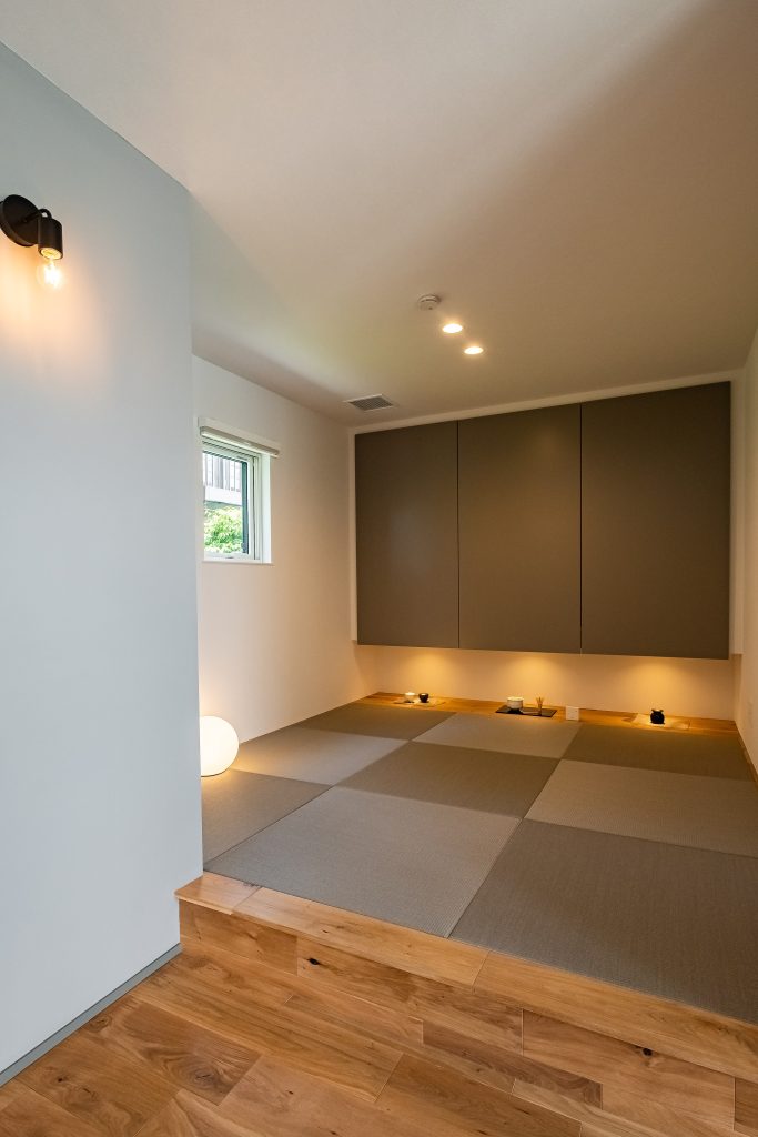 LDKとつながる小上がりの和室は、ゴロンと横になったり、赤ちゃんの昼寝をさせたり、使い方は無限大!框に床と同じオーク材を使い、リビングとキッチンの統一感を出しました。