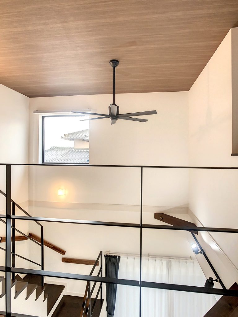 リビングでは、吹抜け部分に設置された高い位置の窓から自然光が豊富に入り、明るく柔らかな光が差し込み、開放感のある空間に。さらに、全館空調システムにより、リビングだけでなく家全体に均等な温度を保つことができ、エアコンの効きを心配する必要がなく、快適な温度環境を維持することが可能です。