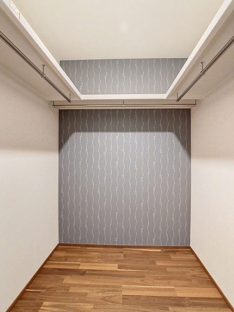 3帖のウォークインクローゼットには大容量の収納が可能です。使い勝手の良い間取りになりました。