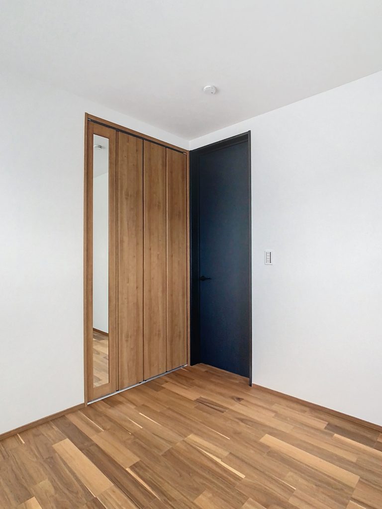 クローゼットの扉に姿見付きのミラーを取り付けました。その場で身だしなみをチェックできるため、お出かけもスムーズになり、便利です。