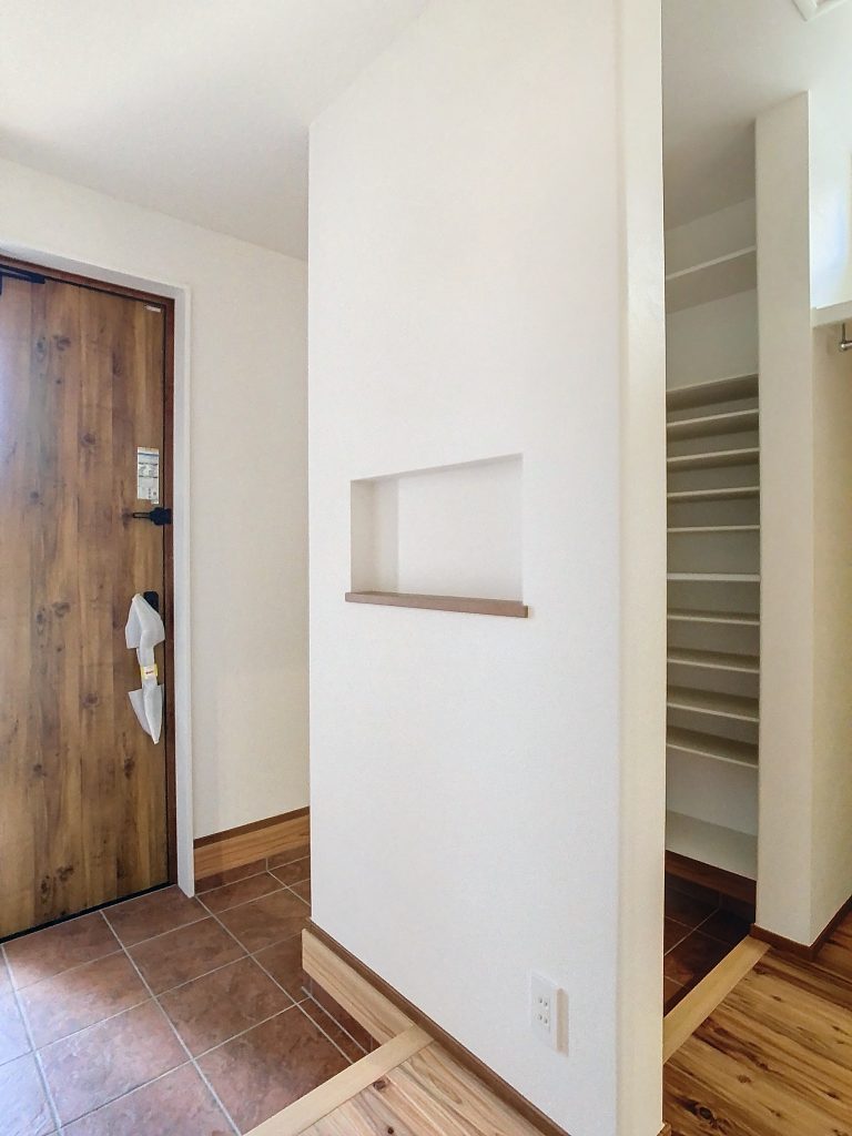 家族用玄関から目的の場所へ向かう動線上にハンガー収納を設けると、住まいは自然と整うようになります。衣類だけでなく、通勤通学用のバッグなども収納できるため、使い方の幅も広がります。