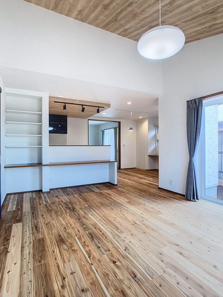 カウンターキッチンは少し高さがあるのが特徴で、洗い物が見えないようになっています。子どもが宿題をするスペースとして活用できたり、リビングの様子を見ながら料理ができるため、子供を見守りながら家事ができるほか、家族のコミュニケーションを取りやすくするメリットがあります。