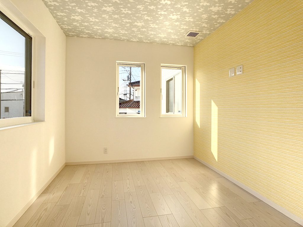 全館空調は、各個室へのエアコン設置が不要なため、存在感のあるクロスで個性的な空間の邪魔をしません!